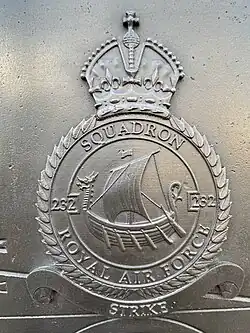 ![]() The squadron's heraldic badge as it appears on the Battle of Britain Monument in London. | |
