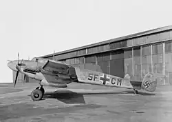The squadron achieved a victory over a Ju 88 from 1./LG 1 on 21 September which crashed and killed the crew.[56] On 25 September 238 intercepted Kampfgeschwader 55 over Dorset. They targeted the Westland aircraft factory at Yeovil with 100 tons of bombs and 24 incendiaries. Supported by 152 Squadron they destroyed five bombers and another damaged.[57] Sergeant F A Silbey baled out was reported shot down by Bf 110s; Zerstörergeschwader 26 was known to be operating in the area and reported two losses and two damaged on 25 September.[58] The following day KG 55 struck at the Woolston factory covered by 70 Bf 110s. 229, 238 and 303 Squadrons intercepted. Three 238 Hurricanes were lost with one pilot killed; Sergeant V Horsky. Squadron Leader Fenton was reported shot down by unidentified Bf 109s but survived.[59] R A King, the third pilot survived apparently unhurt.[60] I and I Gruppe ZG 26 reported one Bf 110 each shot down with the loss of their crews in combat with 238. Only a single 2./KG 55 was shot down because of strong protection from ZG 26.[61] Despite the interception, 59 Heinkels dropped 70 tons of bombs on the factory bringing production to a halt. Three complete Spitfires, were destroyed, 20 damaged and 37 people were killed in the factory and 52 in surrounding areas.[59] 238 pilots claimed four Bf 110s destroyed and five damaged. Three He 111s were claimed destroyed.[62]
