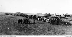 Formed during World War I at Fort Grange, Gosport on 1 March 1916 as Number 45 Squadron, the unit was first equipped with Sopwith 1½ Strutters which it was to fly in the Scout role. Deployed to France in October of that year, the Squadron found itself suffering heavy losses due to the quality of its aircraft. This did not change until it transitioned to the Sopwith Camel in July 1917. Transferred to the Austro-Italian front at the end of 1917, 45 Squadron there engaged in ground attack and offensive patrols until September 1918 when it returned to France and joined the Independent Force.[2]