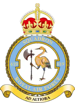 | Squadron Badge heraldry | A heron vigilant, holding before him a battle axe with its right paw (unofficial)[3] |