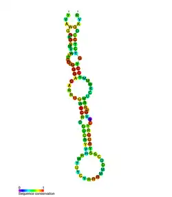 The ncRNA that is involved in rDNA silencing is known as pRNA and has been shown to originate from a spacer promoter located upstream of the pre-ribosomal RNA transcription start site. Once this ncRNA is transcribed, it is processed to form a 150–250 nucleotide long RNA molecule and overlaps the rDNA promoter region. Computational analysis of pRNA predicted that pRNA forms a conserved stem loop structure and is shown to be conserved across a number eukaryotes.