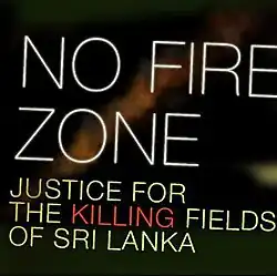No Fire Zone: In the Killing Fields of Sri Lanka is an investigative documentary about the final weeks of the Sri Lankan Civil War. Released by Channel 4, the documentary covers the period from September 2008 until the end of the war in 2009 in which thousands of Tamil people were killed by shelling and extrajudicial executions by the Sri Lankan Army including Balachandran Prabhakaran, the 12-year-old son of the slain Liberation Tigers of Tamil Eelam (LTTE) Chief Velupillai Prabhakaran.[1] The Sri Lankan army has denied the allegations in the documentary. However, on 21 October 2015 the BBC reported that Maxwell Paranagama, a government-appointed Sri Lankan judge, says allegations the army committed war crimes during the long conflict with Tamil Tiger rebels are "credible". He went on to say there was evidence to suggest that footage obtained by the No Fire Zone – showing prisoners naked, blindfolded, with arms tied and shot dead by soldiers – was genuine.[2][3][4][5][6]