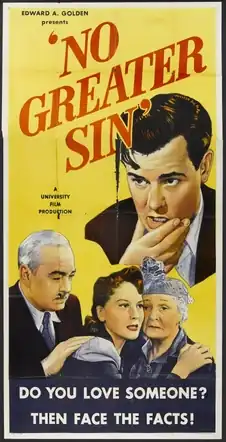 No Greater Sin is a 1941 American drama film directed by William Nigh and starring Leon Ames, Luana Walters. and Pamela Blake.[1][2] It was released a few months before America's entry into World War II.