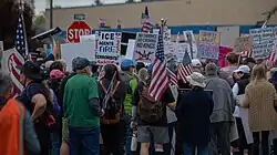An event in Los Angeles drew over 200,000 protesters,[40] and numerous other protests were held across Los Angeles County as part of the movement.[41][42] Thousands rallied at Long Beach.[43] In Ventura County, more than 12,000 gathered, including 5,500 people in Ventura, 3,000 in Thousand Oaks, 2,000 in Simi Valley, and 1,500 in Ojai.[44] Other demonstrations took place in Beverly Hills,[45] Torrance,[46] and Pasadena.[47]