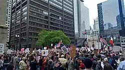 Over 75,000 people protested in Chicago,[135] and protests were also scheduled elsewhere in the state.[136] Over 1,000 people took part in a protest in Springfield, marching from the Capitol grounds to the Old State Capitol.[137]