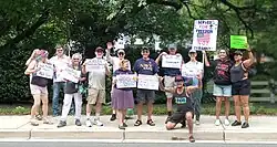 Organizers estimated that almost 5,000 people rallied at Patterson Park in Baltimore.[176] In Montgomery County, more than 3,000 people attended the demonstration along Rockville Pike in Rockville, more than 2,500 gathered in downtown Bethesda along Wisconsin Avenue, hundreds demonstrated in Takoma Park,[177] and others attended events elsewhere in the county.[178] On the Eastern Shore, hundreds rallied at Salisbury.[179]