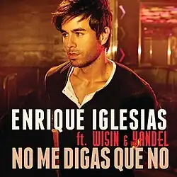 "No Me Digas Que No" (English: Don't Tell Me No) is a song performed by Spanish singer Enrique Iglesias taken from his first bilingual studio album, Euphoria. It was produced by Carlos Paucar and Reggaeton producers Nesty "La Mente Maestra" and Victor "El Nasi". It featured Reggaeton puerto rican Duó Wisin & Yandel. It was released digitally on 22 June 2010 as the second promotional Spanish single.[1] The song hit the radio stations officially on 19 October 2010.[2] It is the third collaborations between the artists after the remix versions of Lloro Por Tí and Gracias a Ti. The song peaked at number-one on the US Billboard Hot Latin Songs, becoming Enrique's twenty-second song to peak at number-one on the chart.
