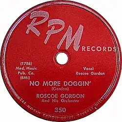 "No More Doggin'" is a rhythm and blues song written and originally recorded by blues musician Rosco Gordon in 1952. The song featured Gordon's signature "Rosco Rhythm" piano style which became a precursor to Jamaican ska music.[1]