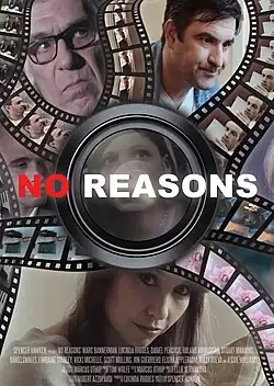 No Reasons is an independent thriller film written and directed by Spencer Hawken. The film was created with Hawkens production company Views From The Edge Films. It stars Marc Bannerman, Lucinda Rhodes, Elisha Applebaum, Daniel Peacock, Roland Manookian, Stuart Manning, Lorraine Stanley and Vicki Michelle.[1]