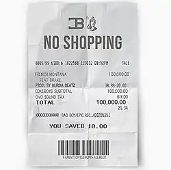 "No Shopping" is a single by American rapper French Montana, from his mixtape MC4.[1] The track features a guest appearance from Canadian rapper Drake. It was released on July 16, 2016. The hip hop track was produced by Murda Beatz and Cubeatz. The song was certified Gold by the Recording Industry Association of America (RIAA) in December 2016, for selling over 500,000 digital copies in the United States.[2]