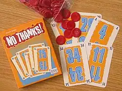 No Thanks! is a card game for three to seven players designed by Thorsten Gimmler. Originally called Geschenkt! (presented (as a gift) in German) and published by Amigo Spiele in 2004, it was translated into English by Z-Man Games.[1][2]