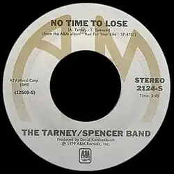 "No Time to Lose" is a rock song performed by English-Australian rock group Tarney/Spencer Band from their album Run for Your Life (1979). It was originally released in March 1979 through A&M Records, with a shorter re-release in 1981, during a period when the music video was enjoying substantial airplay on MTV. The song was written by Alan Tarney and Trevor Spencer, and produced by David Kershenbaum. The song charted twice on the United States Billboard Hot 100 chart with each of its releases. The album is STILL not available on iTunes.
