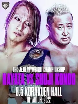 - ^ BBM Mobile (August 5, 2022). 8/5 NOAH HAYATAが最強挑戦者・近藤を撃破 DEPARTURE 2022 東京・後楽園ホール 観衆616人. bbm-mobile.com (in Japanese). Retrieved January 1, 2023.