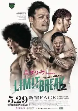 NOAH Limit Break 2 was a professional wrestling event promoted by CyberFight's sub-brand Pro Wrestling Noah and took place on May 29, 2024, in Tokyo, Japan, at the Shinjuku Face. Broadcasting was on CyberAgent's AbemaTV online linear television service and CyberFight's streaming service Wrestle Universe. The event also featured the participation of various wrestlers from Pro Wrestling Zero1, All Japan Pro Wrestling and DDT Pro-Wrestling.[2]