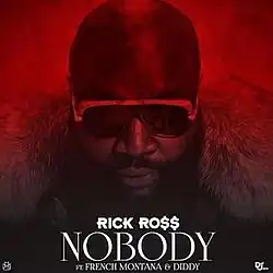"Nobody" is a song by American hip hop recording artist Rick Ross, taken from his sixth studio album Mastermind (2014). The song, produced by Diddy, features a guest appearance by rapper French Montana. It was written by William Roberts, Sean Combs, Karim Kharbouch, Christopher Wallace, Stevie Jordan, Ephrem Lopez and Jiv Poss. On February 19, 2014, it was released as the album's third promotional single. "Nobody" was met with generally positive reviews from music critics. It debuted at number 38 on the US Billboard Hot R&B/Hip-Hop Songs upon the album's release.