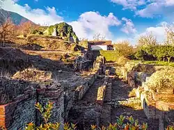 The most important necropolis was south of the city at the foot of Mount Albino in the locality of Pareti. Tombs were often in tuff from Fiano or in limestone from Monte Albino. Painted or bronze vases were found in these tombs and various objects of iron, lead, and other metals.[12] In the 1950s more archaeological excavations brought to light more than a hundred burials of the sixth and fifth centuries BC and others from the Samnite period, i.e. from the 4th and 3rd centuries BC.[13] Etruscan amphorae also testified to the city's contacts.[14]