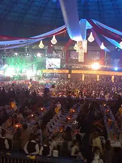 Music, songs and dances are organized in the auditoriums, hotels, beaches and as well as in the grounds which are shown live concert on television where many Dhallywood celebrities along with many personalities participate in the dance, music, songs and often drama to liven up the concert more. Sometimes marriages and weddings take place in the clubs on the night of 31 December so that Bangladeshis can enjoy more.[9] Bangladeshis also enjoy New Year's Eve with their families, relatives, and friends in the ships and yachts especially in the sea while going to Saint Martin where DJs liven up their night through their music and songs.[10]