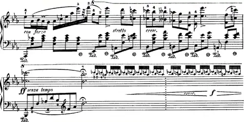 4 meter. It is written in ternary form; after the primary theme, the secondary theme starts in measure 19, followed by a modified version of the primary theme in measure 70.