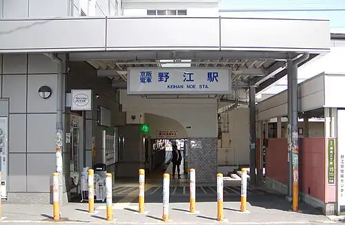 Noe Station (野江駅, Noe-eki) is a railway station on the Keihan Main Line in Joto-ku, Osaka, Japan, operated by the private railway operator Keihan Electric Railway.