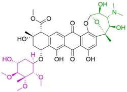 - ^ a b c Siitonen, V. et al. Identification of Late-Stage Glycosylation Steps in the Biosynthetic Pathway of the Anthracycline Nogalamycin. ChemBioChem 13, 120–128 (2011).
