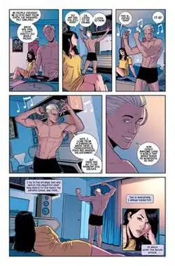 Noh-Varr appeared as Marvel Boy in the 2013 Young Avengers series by Kieron Gillen and Jamie McKelvie[23] where he begins to date Kate Bishop and reveals that, like the majority of the team, he is "not completely straight".[24][25]