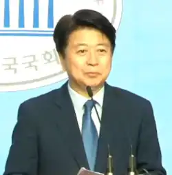 - ^ 박, 현진 (2019-04-30). 여당 원내대표 경선 돌입…김태년ㆍ노웅래ㆍ이인영 3파전. Yonhap News Agency (in Korean). Retrieved 2020-05-19.
