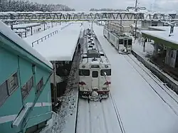 Noheji Station (野辺地駅, Noheji-eki) is a railway station located in the central district of the town of Noheji in Aomori Prefecture, Japan. The station has been operating since 1891. Since 2010, the station has been jointly operated by the East Japan Railway Company (JR East) and the Aoimori Railway Company, a third sector, regional rail operator. The station is the southern terminus of JR East's Ōminato Line and was formerly the northern terminus of the Nanbu Jūkan Railway.[1][2]