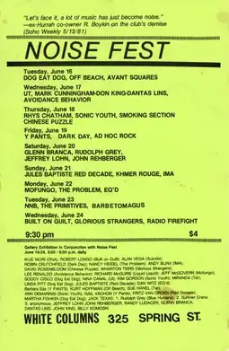 Noise Fest was an influential festival of no wave noise music performances curated by Thurston Moore of Sonic Youth at the New York City art space White Columns. It ran from June 16th to June 24th, 1981. Sonic Youth made their first live appearances at this show.[1]
