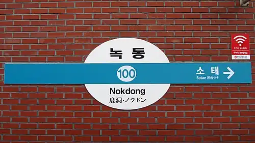Nokdong station is a railway station on Gwangju Metro Line 1 in Nokdong, South Korea. The station is located near at the depot.