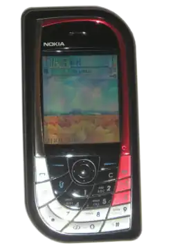 The Nokia 7610 is a Symbian OS mobile phone introduced at CEBIT on 18 March 2004.[2] It features a 1 megapixel camera (1152x864 pixels) with a design similar to 2003's Nokia 7600. It went on sale with a list price of €500 and came with a 64 MB MMC card.[3] It runs on Nokia's Series 60 platform (version 2.1). It was marketed as a stylish and imaging device, and allowed direct Bluetooth photo printing.[4] End-users can also use the 7610 with Nokia Lifeblog. Other pre-installed applications include the Opera Mobile web browser, RealPlayer and Kodak Photo Sharing.