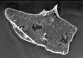 Nomans Land (Wampanoag: Cappoaquit;[1] also mapped "No Man's Land,"[2] "No Mans Land,"[3] or "No Man's island"),[4] is an uninhabited island 612 acres (248 ha) in size, located in the town of Chilmark, Dukes County, Massachusetts.[5] It is situated about 3 miles (4.8 km) off the southwest corner of the island of Martha's Vineyard.