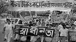 The non-cooperation movement of 1971 was a historical movement in then East Pakistan (now Bangladesh) by the Awami League and the general public against the military government of Pakistan in March of that year. After the announcement of the suspension of the session of the National Assembly of Pakistan on 1 March, the spontaneous movement of the people started, but officially on the call of Sheikh Mujibur Rahman, the non-cooperation movement started on 2 March[1] and continued until 25 March. The movement lasted for a total of 25 days.[2]