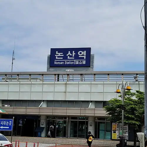 Nonsan station is a KTX station on the Honam Line. Nonsan station opened in November 1911, and Nonsan's old name was 'Hwangsan'. The Honam KTX began to stop on April 1, 2004.[1]