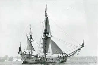 Nonsuch was the ketch that sailed into Hudson Bay in 1668-1669 under Zachariah Gillam, in the first trading voyage for what was to become the Hudson's Bay Company two years later.[1] Originally built as a merchant ship in 1650, and later the Royal Navy ketch HMS Nonsuch, the vessel was sold to Sir William Warren in 1667. The name means "none such", i.e. "unequalled". The ship was at the time considered smaller than many others but was specifically selected because of her small size so that when she arrived in Hudson Bay and James Bay she could be sailed up-river and taken out of water so the thick ice of the bay wouldn't crush her.