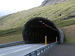 Norðfjarðargöng (Icelandic pronunciation: [ˈnɔrðˌfjarðarˌkœyŋk] ⓘ, lit. 'Northfjord Tunnel') is a tunnel in Iceland, located in Eastern Region along Route 92. It has a length of 7,542 m (24,744 ft)[1] and was originally due to be completed in 2014.[2] After delays, prompting protests by residents of the area,[3] it opened on 11 November 2017.[4] Norðfjarðargöng connects the communities of Neskaupstaður and Eskifjörður, replacing the Oddsskarðsgöng tunnel.[3]