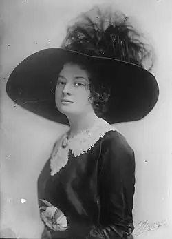 In 1908, Bayes married fellow performer Jack Norworth, and the couple became media celebrities. They performed together, and were credited with co-writing the hit song "Shine On, Harvest Moon", included in the Ziegfeld Follies of 1908, along with several other songs in the show.[4] Bayes was the star performer, commanding a much higher salary than Norworth, and sometimes challenging the authority of theatre managers and promoters. She walked out of the Ziegfeld Follies of 1909 because of a disagreement with Ziegfeld over the billing of a rising new star named Sophie Tucker; Ziegfeld then sued Bayes for breach of contract, which prevented her performing in other theatres for several months.[1]