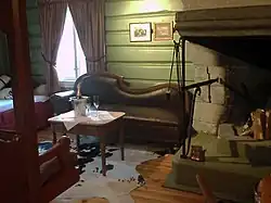 The storehouse. As with the other buildings, the date of the storehouse is uncertain. It is dated to the 1800s in the SEFRAK register and to the 1700s in vol. 2 of Gards- og slektshistorie for Heidal (=Farmstead and family history in Heidal). It was moved to the current location from the old yard.[7] Today it is furnished to provide guest accommodation on both the ground and first floors.