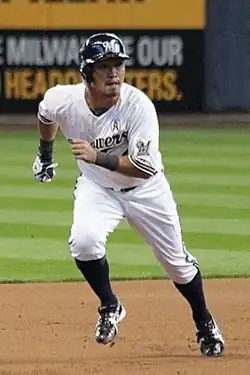 On June 7, 2012, in a game against the Chicago Cubs, Aoki hit his first out of the park home run in his MLB career. He then hit a second home run in the bottom of the tenth inning, breaking a 3–3 tie. It was his first career walk-off, and his first career multi-home run game.[18][19] During the later portion of the season, Aoki has started to become a spark plug for the Brewers. He made great defensive plays[20][21] and got big hits when they were needed, including a 2-out, 2-strike, 2-run home run on September 9, 2012, against St. Louis to tie the game and send it to extra innings.[22] This game was needed by the Brewers to help push them toward a possible Wild Card berth.