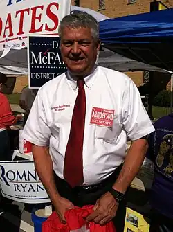 When incumbent Republican Jean Preston announced that she would not seek re-election to the NC Senate District Two seat, Sanderson announced that he would run for the position.[6] In the primary, he faced Randy Ramsey, a businessman from Beaufort, and Ken Jones who is mayor of Pine Knoll Shores.[7] Sanderson won the primary with 51.86% of the vote.[8] He goes on to face Democrat Greg Muse in the general election.[1]