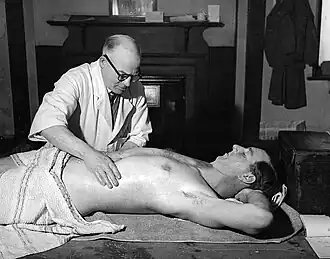 It was intended that Yardley would appear lower down in the batting order, batting with a substantial total accumulated by the previous batsmen. However, the frailties of the England batting meant he often appeared in a crisis and had to rebuild several innings.[27] Bill Bowes, the Yorkshire and England bowler who covered the tour as a journalist, was impressed by Yardley's approach, noting that he did not back away from the fast bowlers, who frequently bowled bouncers at him: "In fact, Yardley played cricket with a determination we had never seen in Yorkshire or in his days at the university."[28] He made the greatest impression as a bowler, surprising commentators with his effectiveness. He did not bowl in the first six matches, but in his first over of the tour dismissed Arthur Morris who had already scored a century. From that point, he was used effectively to break up partnerships. In the Tests, he removed Donald Bradman in three successive innings, while in the third Test, he took two wickets, including Bradman, in two deliveries.[27] Bowes believed the natural length of Yardley's bowling was perfect for Australian pitches—he was not skilful enough to alter the length at which he bowled so his bowling in other conditions was less effective.[28] The Australian reporter Clif Cary wrote "It was always amusing to watch the Englishmen when Yardley took a wicket. The first time they seemed fairly amused, but when he was regularly breaking partnerships, their enthusiasm knew no bounds, and it is said that in Melbourne after he had obtained Bradman's wicket for the third time, Yardley blushed profusely when one excited team-mate slapped him on the back and shouted "Well, bowled, Spofforth".[29]