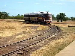 The Normanton to Croydon railway line is a heritage-listed railway line in the Gulf Country of northern Queensland, Australia. The railway line linking Normanton in the Shire of Carpentaria to Croydon in the Shire of Croydon was built between 1888 and 1891 and is the last isolated line of Queensland Rail still in use. It utilises an innovative system of submersible track with patented steel sleepers and retains buildings of considerable architectural and technical interest at its terminus in Normanton. The only train to operate on the line is the weekly Gulflander service operated by a Gardner diesel propelled railmotor and carriages TP1809 and TP1811.[1][2]