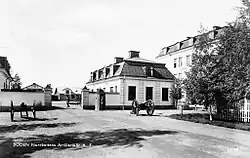 The Norrland Artillery Regiment's Detachment was placed in the barracks area along Sveavägen, which was originally planned for the Norrbotten Cavalry Corps (Norrbottens kavallerikår, K 9). During the years 1928–1940, the barracks area was shared with the 3rd Squadron of Norrland Dragoon Regiment (K 4), which were located in the western barracks. On 19 July 1940, the barracks were taken over by Boden Signal Company (S 1 B), which were located there until 31 October 1945.[2][6] After the disbandment of the corps, and when the artillery division left the area, the barracks area was taken over entirely by the Signal Battalion in Boden (S 3). From 31 August 2005, the Artillery Regiment (A 9) is located in the barracks area.