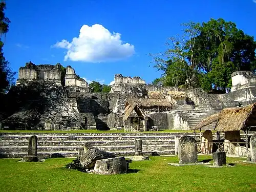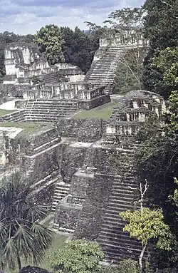 The North Acropolis of the ancient Maya city of Tikal in Guatemala is an architectural complex that served as a royal necropolis and was a centre for funerary activity for over 1300 years. The acropolis is located near the centre of the city and is one of the most studied of Maya architectural complexes. Excavations were carried out from 1957 to 1969 by the University of Pennsylvania, directed by Edwin M. Shook and William Coe.[1]