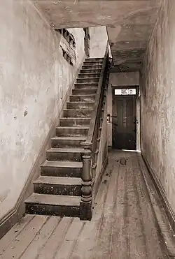 Disaster came on September 10, 1854, when a fire swept the colony's mill and all its contents.[29] No insurance was recovered, and the community found itself facing $30,000 in accumulated debt with no ready means of repayment.[29] Of this, some $9,000 remained unpaid on the original mortgage, with additional bills accumulated for a new engine and boiler for the mill.[30] Additionally, at the time of the fire the mill had housed a large quantity of wheat purchased on credit, for which the phalanx was financially responsible.