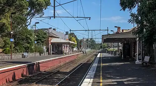![]() Southbound view from Platform 1, February 2016 | ||||||||||||||||||||||||||||||||||||||||||||||||||||||||||||||||||||||