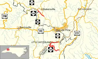 2. ^ a b "North Carolina Highway 226A - Bakersville" (Map). Google Maps. Retrieved February 6, 2013.