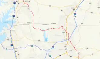 North Carolina Highway 3 (NC 3) is a primary state highway in the U.S. state of North Carolina. The road runs from US 601 in southern Concord, north through Mooresville to US 29 in Kannapolis. It is numbered after Dale Earnhardt, the NASCAR driver, who was driving the #3 car when he died at the 2001 Daytona 500.[3] This state highway runs from Kannapolis, Earnhardt's birthplace, to downtown Mooresville, where many NASCAR teams are based. A short section of NC 3 is named Dale Earnhardt Boulevard, a name which was given to the road prior to Earnhardt's death.