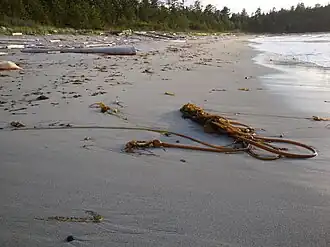 The 43.1 km (26.8 mi) trail in Cape Scott Provincial Park runs along beaches and through forests around the northern tip of Vancouver Island from Shushartie Bay to Nissen Bight. At Nissen Bight, it links up with an existing 15 km (9.3 mi) trail which leads to the trailhead at San Josef River. The trail crosses the Nahwitti River via ladders, stairs, and a cable car.[1] The total distance for hikers between the trailheads is 59.5 km (37.0 mi). The trail is in a wilderness area and hikers may see deer, elk, black bears, cougars, wolves, seabirds, seals, sea lions, grey whales and sea otters. In two failed attempts, Danish pioneers tried to settle the area at the turn of the twentieth century and the trail incorporates some of their original routes.