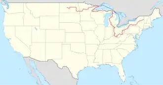 The North Country National Scenic Trail spans eight U.S. states over its roughly 4,800 miles (7,700 km), traveling through North Dakota, Minnesota, Wisconsin, Michigan, Ohio, Pennsylvania, New York, and Vermont.[1] The western end is at Lake Sakakawea State Park in North Dakota, and the eastern end is at a junction with the Appalachian Trail in Vermont's Green Mountain National Forest. As of 2023, most of the trail is in place, though about one-third of the distance consists of road walking; those segments are frequently evaluated by the North Country Trail Association for transfer to off-road segments on nearby public or private lands.[2]