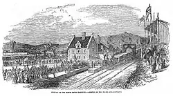 The E&CR was to reinstate broad gauge on one line of the double track, and pay the B&ER to install the essential junction at Cowley Bridge. This was quickly done, with the second narrow gauge line being left disconnected. Captain Mynne of the Board of Trade inspected the line and approved it, and a ceremonial opening took place on 12 May 1851. A passenger service of seven trains each way started immediately. The stations were Newton St Cyres and Crediton; the Cowley Bridge station was not now required and was never opened.[7][8]